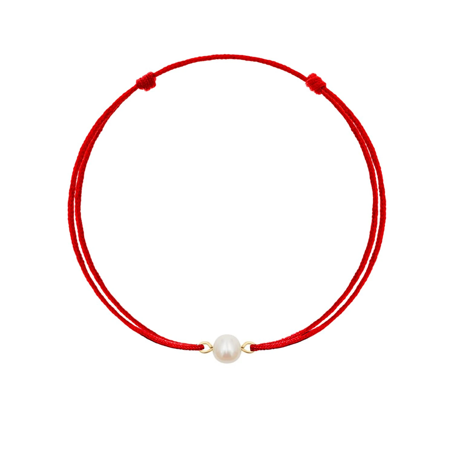 O brățară delicată din șnur roșu, cu pandantiv din perlă Mother of Pearl, montată manual pe sârmă din argint placat cu aur. Simplă, dar elegantă, această brățară pune în valoare frumusețea naturală a perlei într-o formă curată și contemporană.