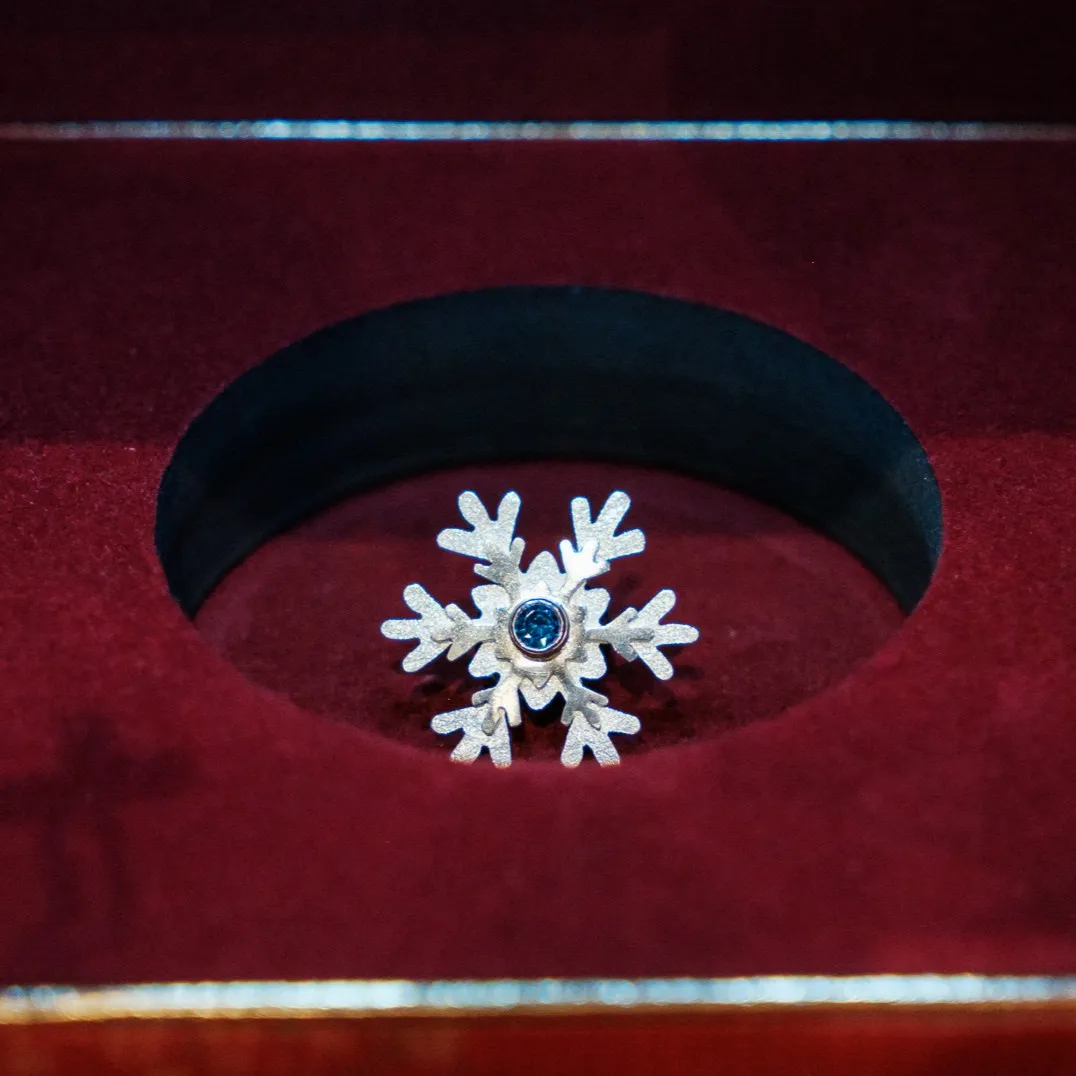 Designul este inspirat din structura naturală a fulgilor de nea, reinterpretată într-o formă elegantă și purtabilă.