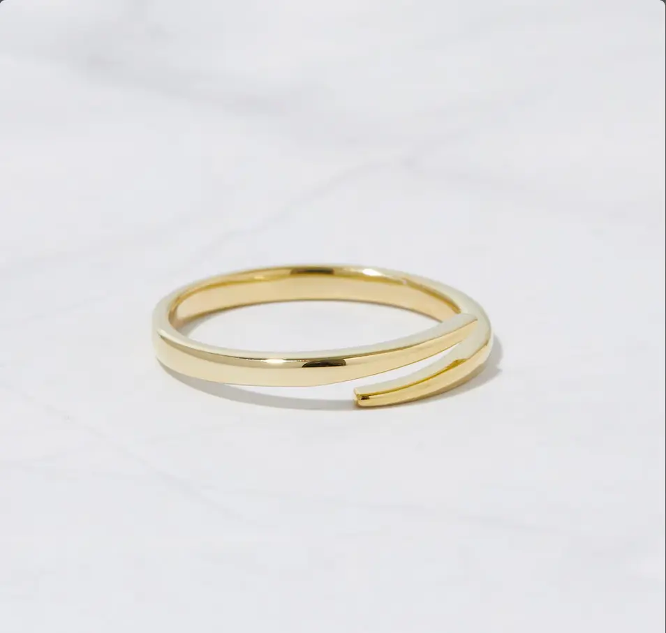 Inel din argint 925 placat cu aur de 14K, usor reglabil datorita designului sau. Elegant si versatil, completeaza cu usurinta orice outfit.