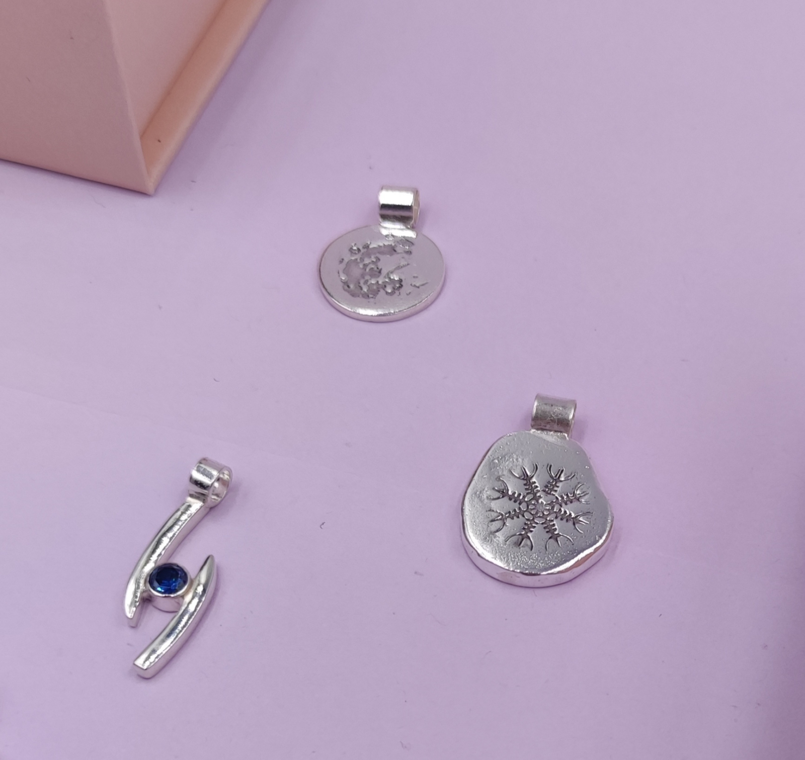 Pandantiv unicat realizat manual din argint pur, cu simbolul islandez Aegishjalmur.