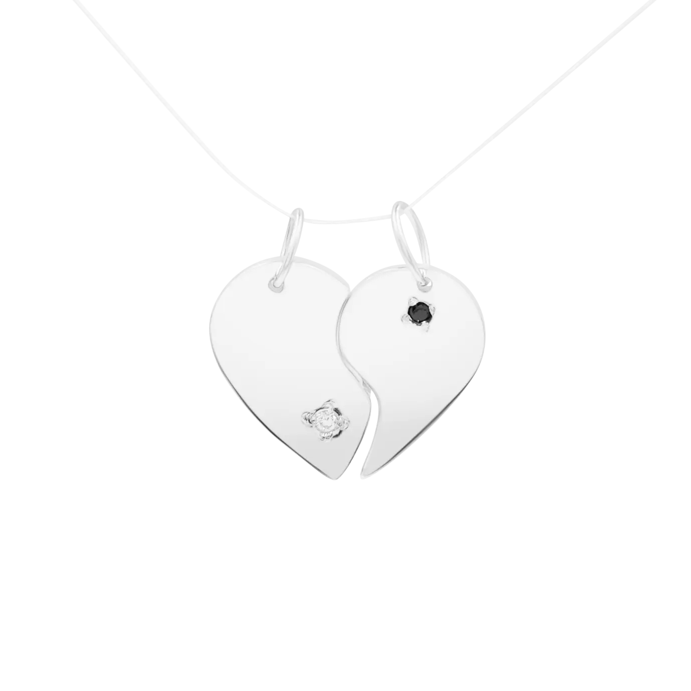 Acest set de pandantive pentru cuplu este realizat manual în atelier propriu din argint și pornește de la o singură inimă, care a fost decupată în două jumătăți complementare.